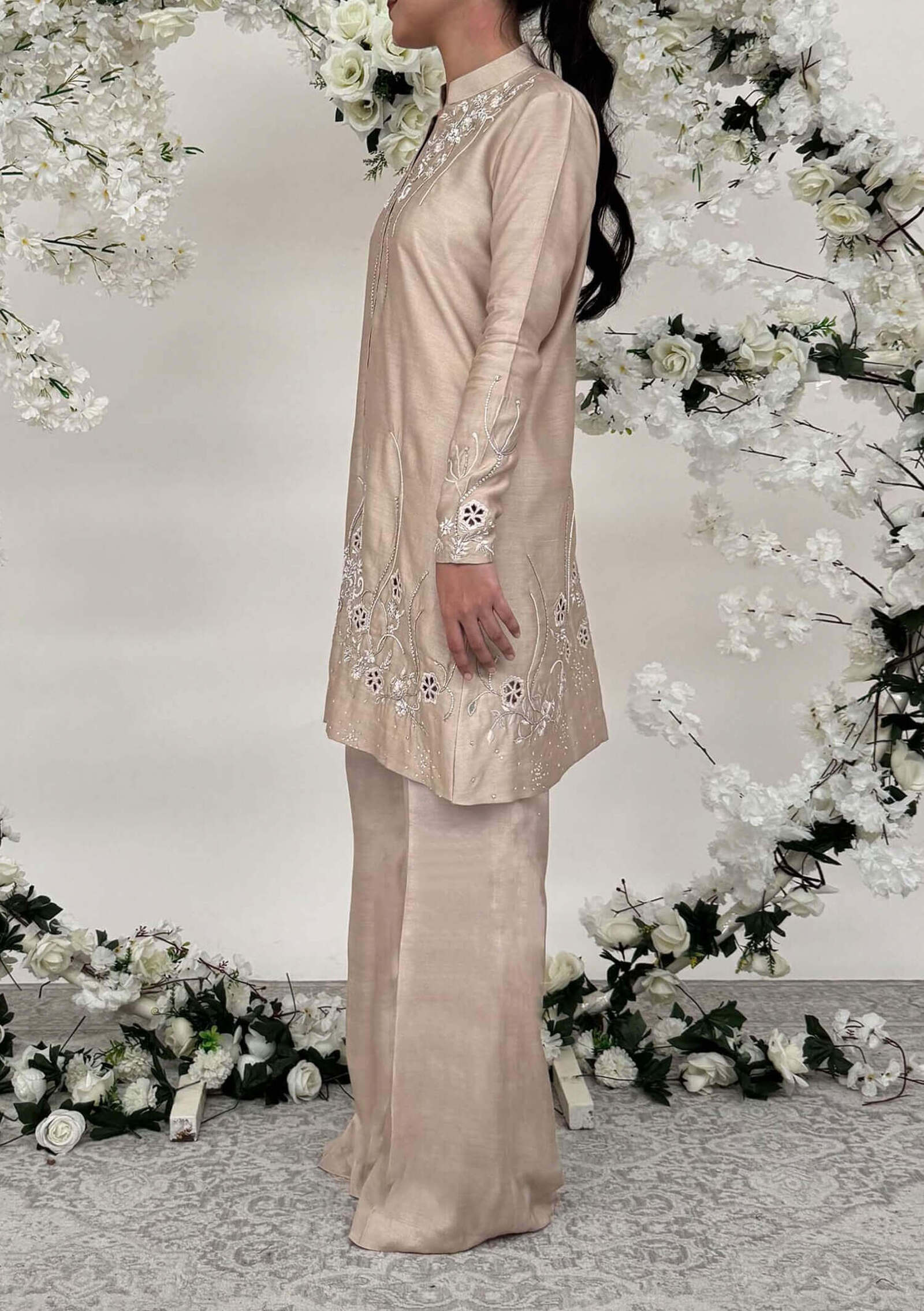 Your must-have essential for all your festivities is finally here! Our Lulu jacket with handwork details so dreamy, it will have you reaching for it over and over again! Wear it for eid or to a closed one’s wedding events, It guarantees a beautiful and memorable look! The cutwork florals on the jacket are a special favourite! Paired with flared pants