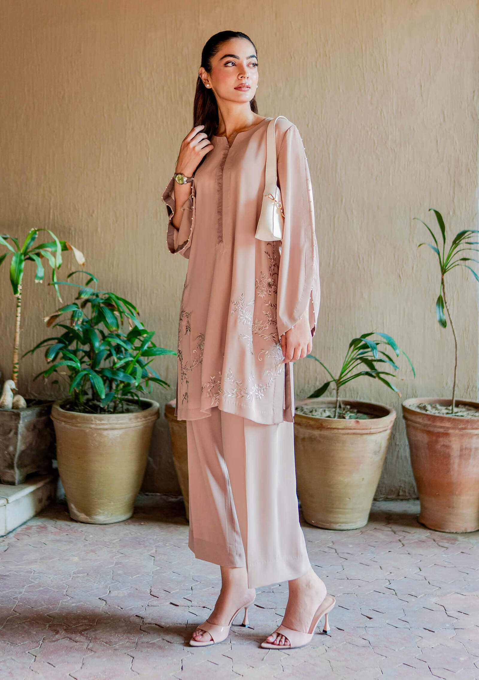 Easy-to-wear luxury everyday pieces crafted on premium georgette that drapes effortlessly and moves beautifully with the body. Designed to transition seamlessly from day to night, these classics are elevated with delicate resham embroidery in soft, understated tones. Timeless silhouettes that become staples you’ll reach for season after season.